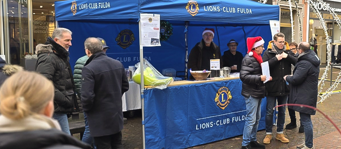 In der Fuldaer Marktstraße sind am Samstag die letzten rund 100 Adventskalender des Lions Club Fulda verkauft worden. Im Rahmen der Verkaufsaktion stellten sich gleichzeitig die Einrichtungen vor, die mit dem Erlös des Kalenders unterstützt werden. Vertreterinnen und Vertreter der St. Antonius Stiftung, des Sozialdienstes katholischer Frauen (SkF) mit dem Kinderprojekt „Rosenbrot – Ein guter Ort für Kinder“ sowie der Aktion Hünfelder Sorgenkinder e. V. nutzten die Gelegenheit, ihre Arbeit persönlich vorzustellen und mit Besucherinnen und Besuchern ins Gespräch zu kommen.