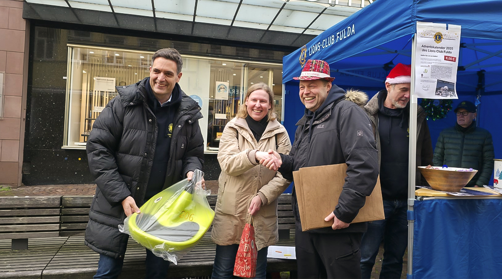 In der Fuldaer Marktstraße sind am Samstag die letzten rund 100 Adventskalender des Lions Club Fulda verkauft worden. Im Rahmen der Verkaufsaktion stellten sich gleichzeitig die Einrichtungen vor, die mit dem Erlös des Kalenders unterstützt werden. Vertreterinnen und Vertreter der St. Antonius Stiftung, des Sozialdienstes katholischer Frauen (SkF) mit dem Kinderprojekt „Rosenbrot – Ein guter Ort für Kinder“ sowie der Aktion Hünfelder Sorgenkinder e. V. nutzten die Gelegenheit, ihre Arbeit persönlich vorzustellen und mit Besucherinnen und Besuchern ins Gespräch zu kommen.