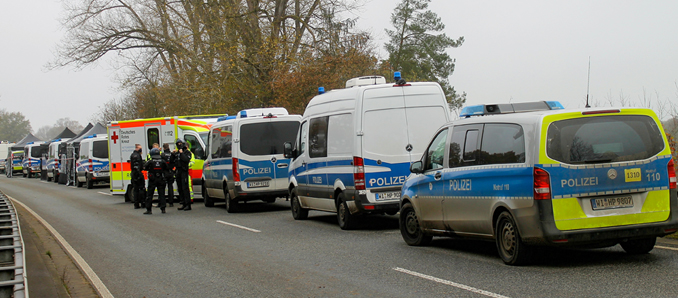 Nach Abschluss der Maßnahmen zog sich die Polizei gegen Mittag in den gesicherten Bereich zurück. Dort wirkten mehrere hundert Personen dann teilweise massiv auf den Absperrzaun ein. Gegen 14:00 Uhr warfen sie schwere Baumstämme und Steine in den gesicherten Bereich. Außerdem versuchten sie, das Zufahrtstor mit einer Barrikade zu blockieren. Durch den Einsatz von Wasserwerfern konnten Personen, die durch ihr Verhalten von der übrigen Gruppe der friedlichen Personen klar unterschieden werden konnten, vom Zaun zurückgedrängt werden. So bestand anschließend die Möglichkeit die errichtete Barrikade mittels Räumfahrzeug und händisch abzubauen. Der „Waldspaziergang“ fand heute unter der Teilnahme von 150 Personen ohne besondere Vorkommnisse statt. Es wurden drei Personen in Gewahrsam genommen. Weiterhin wurden acht Ermittlungs- und drei Ordnungswidrigkeitenverfahren eingeleitet und drei sogenannte Platzverweise ausgesprochen, so die Polizei in ihrer Mitteilung. +++