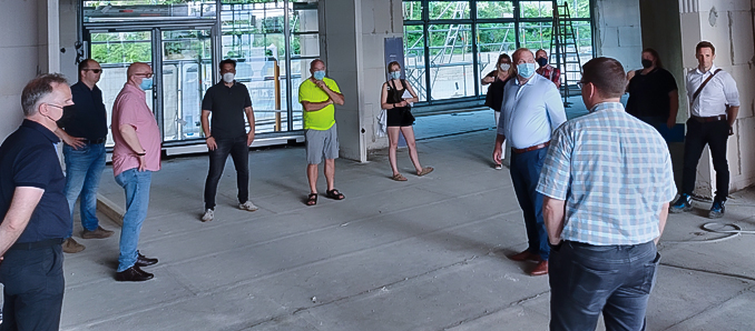 Nach mittlerweile einjähriger Bauzeit war es den Stadtverordneten so möglich, den fertiggestellten und bereits teilweise verputzten Rohbau zu begutachten und sich einen Eindruck vom zukünftigen Standort zu verschaffen. Ein besonderes Augenmerk wurde dabei zum einen auf die energetischen Aspekte des Hauses gelegt. So wird das Gebäude mit einer Photovoltaikanlage und einer Belüftungsanlage ausgestattet. Auch wenn letzteres eher selten in neuen Kindertagesstätten vorhanden sei, habe man mit dem Arbeitskreis bei den Besichtigungen anderer Neubauten festgestellt, dass dies ein regelmäßiger Wunsch der Belegschaften im Hinblick auf sommerliche Temperaturen war.