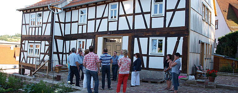 Jetzt dient die Werkstatt Hobbyarbeiten und steht für Interessierte jederzeit offen. Im oberen Bereich stehen Besprechungsräume zur Verfügung, wo im Anschluss an die Führung eine Fraktionssitzung der CDU stattfand. Die CDU-Fraktion zeigte sich sehr beeindruckt von den restaurierten Gebäuden und der Ausdauer der Burkards. Fraktionsvorsitzende Böschen sprach ihre Bewunderung für den Mut der Burkards aus und sie hofft, dass das gelungene Ergebnis Ansporn für andere Eigentümer ist. +++ fuldainfo