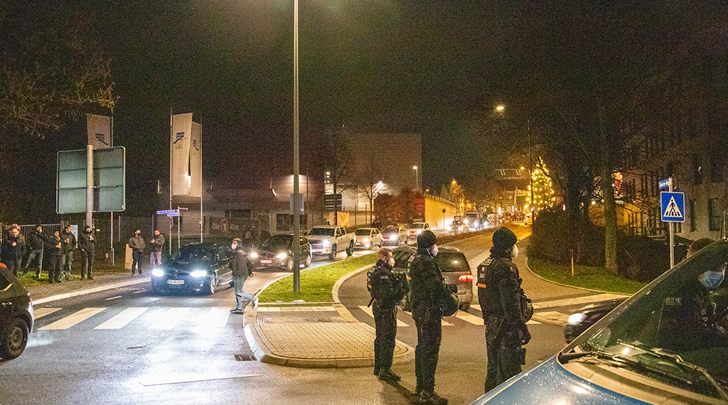 In der Spitze ist von circa 1.000 Teilnehmenden auszugehen. Die Polizei hat entsprechende Verstöße beweisgesichert dokumentiert und wird diese im Nachgang aufarbeiten. In diesem Zusammenhang kam es auch zu mehreren Personalienfeststellungen.