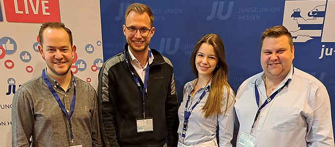 Freuen sich über die Wahl Anna Buntings (3. v.l.) als Co-Vorsitzende der „Bundeskommission Gesellschaft und Familie“: Lukas Kaufmann, Benedikt Stock und Alexander Kluge (v.l.). Foto: JU Osthessen