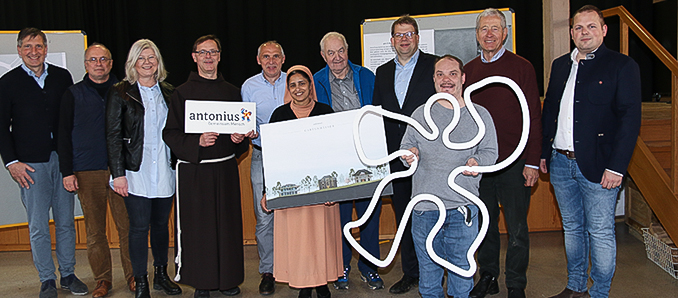 Gemeint waren damit die vier sogenannten Gartenhäuser, die auf dem Hauptgelände von antonius gebaut werden und ein schon seit 2015 bestehendes Gartenhaus ergänzen sollen. In den Mehrfamilienhäusern werden insgesamt 29 Wohnungen entstehen. Ein Teil der Wohnungen wird subventioniert, indem sich Mieterinnen und Mieter gegenseitig helfen. Dieses Projekt vereine die Selbstständigkeit der Bewohnerinnen und Bewohner mit der Solidarität der Gemeinschaft, so Rhiel. Dank richtete er an die vielen Beteiligten, die dieses Wohnprojekt erst ermöglichten, insbesondere an Norbert Strauss vom gleichnamigen Unternehmen Engelbert Strauss, das den Bau großzügig finanziell unterstützt und dadurch das gesamte Wohnprojekt erst ermöglicht.