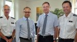 Auch Osthessens Polizeipräsident Alfons Georg Hoff hatte Dag Wehner zum Antrittsbesuch begrüßt. Das Treffen diente dabei nicht nur dem gegenseitigen Kennenlernen. Gleichzeitig konnten in der Runde, der auch der Leiter der Abteilung Einsatz beim Polizeipräsidium Osthessen, Leitender Polizeidirektor Ralf Flohr, und der Leiter der Polizeidirektion Fulda, Polizeidirektor Bernhard Jäger, angehörten, verschiedene Themen rund um die öffentliche Sicherheit und Ordnung in der Stadt Fulda besprochen und vertieft werden. So tauschten sich die Entscheidungsträger von Politik und Polizei in Fragen rund um das Kneipenviertel "Bermuda Dreieck" sowie über anstehende polizeiliche Einsatzlagen im Bereich der Stadt Fulda aus. Außerdem verabredeten sie die Fortsetzung regelmäßiger Besprechungen im Rahmen der "Sicherheits- und Ordnungsgespräche". "Ich freue mich, mit Dag Wehner einen kompetenten Ansprechpartner bei der Stadt Fulda zu haben, mit dem wir die bestehende hervorragende Zusammenarbeit weiter fortsetzen können", resümierte Osthessens Polizeipräsident Alfons Georg Hoff den Besuch. +++ fuldainfo
