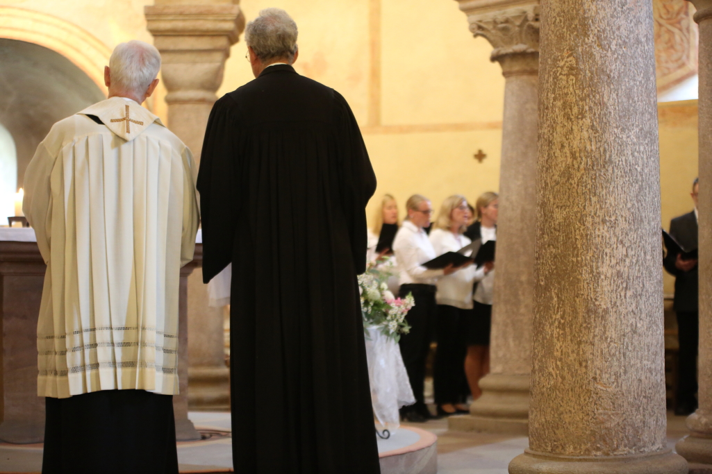 In dem Ökumenischen Gottesdienst am Freitagvormittag mit der Thematik „Die Gaben des Heiligen Geistes“, waren Herr Generalvikar Prof. Dr. Gerhard Stanke sowie Herr Dekan i. R. Ulrich Braner auf das Tätigkeitsfeld Rechtsgelehrter in ihrer Verantwortlichkeit vor Gott eingegangen. „Es waren wohl noch nie so viele Rechtsgelehrte in der Michaelskirche versammelt, wie heute“, mutmaßte Generalvikar Stanke zu Beginn des Ökumenischen Gottesdienstes. „In der Bibel ist Gott der Anwalt der Gerechten.“ In Erinnerung an ein Gespräch Jesus mit seinen Jüngern, verwies Generalvikar Stanke auf den „Geist der Wahrheit“, den die Welt nicht empfangen könne, weil sie ihn nicht sieht. Ihr aber tragt ihn in euch,“ vermittelte Prof. Dr. Gerhard Stanke den Rechtsgelehrten das Gleichnis. „Gott ist Anwalt des Lebens“, sagte Dekan Ulrich Braner – wie sehr, zeige sich an jedem der 10 Gebote.