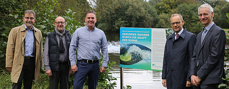 Fulda. In den vergangenen Jahren kam es im Sommer in den Aueweihern regelmäßig zu größeren oder kleineren Fischsterben. Ursache war ein stark gesunkener Sauerstoffgehalt des Wassers. Das soll jetzt nicht mehr passieren. Sechs sogenannte „Aqua-Jets“ belüften bedarfsgerecht das Wasser. Installiert hat die neue Technik der Angelsportverein Fulda, maßgeblich unterstützt aus Mitteln des Förderprogramms für Energieeffizienz und Erneuerbare Energien der RhönEnergie Fulda. Im Beisein geladener Gäste wurde die Anlage zur Stabilisierung des beliebten Fuldaer Naherholungsgebiets nun eingeweiht.