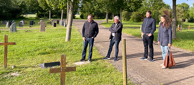 Der Arbeitskreis für Bauwesen, Klimaschutz und Stadtplanung der CDU-Stadtverordnetenfraktion Fulda, besuchte kürzlich den Hauptfriedhof West in der Ernst-Barlach-Straße, um sich über die aktuellen Entwicklungen und Planungen im Bestattungswesen zu informieren. Der Friedhof, eröffnet im Jahr 2003, bietet Platz für 5000 Gräber auf einer Fläche von 10,4 Hektar und kann bei Bedarf auf 10000 Gräber erweitert werden. „Angesichts der stetig steigenden Anzahl an Bestattungen und der Platzprobleme auf dem Zentral- und Frauenbergfriedhof wird erwartet, dass sich der Hauptfriedhof West langfristig zum neuen Zentralfriedhof der Stadt Fulda entwickeln wird. Dies erfordert kontinuierliche Pflege und die Implementierung eines stationären Pflegetrupps“- so Arbeitskreisvorsitzender Michael Ruppel.