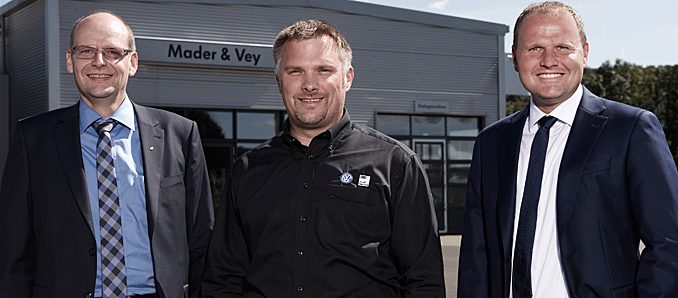 Das 1955- und somit seit über 60 Jahren bestehende Unternehmen „Mader & Vey“ in Schlüchtern (Main-Kinzig-Kreis), wird bereits in dritter Generation geführt. Das Unternehmen hat 11 Mitarbeiter und hält Serviceverträge für die Marken Volkswagen Pkw und Audi. Darüber hinaus, werden Gebrauchtwagen verkauft, Neuwagen vermittelt sowie alle dazu gehörenden Dienstleistungen, von den vielen zufriedenen Kunden des Autohauses, jetzt und auch in der Zukunft, angeboten. Alle Mitarbeiterinnen und Mitarbeiter werden selbstverständlich übernommen und somit alle Arbeitsplätze gesichert.
