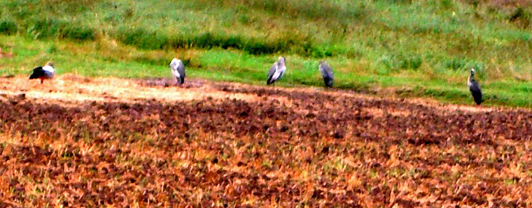 Schlitz. Ein Schnappschuss aus dem fahrenden Untersatz. Dass auch Großvögel ihren Mittagscschlaf brauchen, konnte gestern neben der Fahrbahn von Pfordt in Richtung Fraurombach beobachtet werden. Vor dem Breitenbach standen zwei Weißstörche schlafend auf einer Wiese und dahinter vier Graureiher und eine Halbgans auf einem Stoppelfeld. Die Gans könnte eine aus der Art der Nilgänse sein oder auch ein Paradies-Kasaka, eine Halbgans, die aus Asien stammt. Bei dieser Gans kann man Männchen und Weibchen am Gefieder unterscheiden, was bei anderen Gänsen nicht so leicht ist. Halbgans ist eine Gattung die von den Forschern als halb Gans und halb Ente bezeichnet wird. Bei dem Versuch, näher an die fünf Großvögel zu gelangen, waren die Graureiher schnell davon geflogen, während die "Halbgans" sich nicht stören ließ. Wildgänse mit teilweise weißem Gefieder waren schon geraume Zeit in unseren Tälern anzutreffen. +++ fuldainfo | hans schmidt