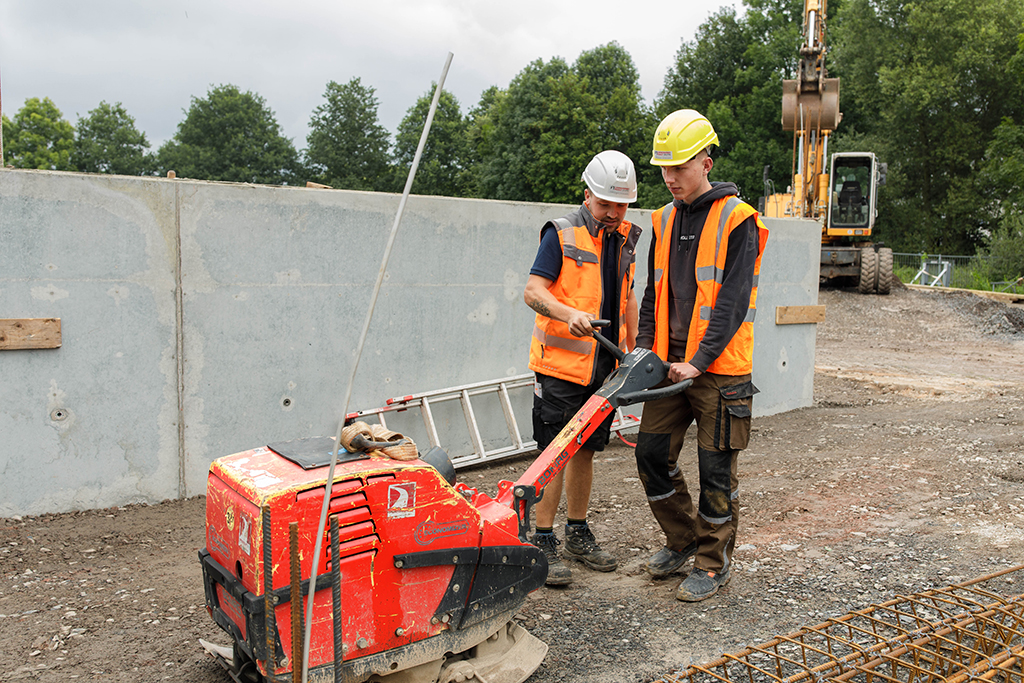 76 verschiedene Berufsbilder boten die Betriebe während der Praktikumswoche an. Darunter war auch das Bauunternehmen Kammerdiener Peegut, wo sich der 15-jährige Till Heumüller an der Baustelle der Bäckerei Happ in Neuhof umgesehen und mitgeholfen hat. „Ich bin mir noch nicht sicher, was ich schulisch machen werde, ob ich eine Ausbildung anstrebe oder erst Abitur. Und deshalb möchte ich mir anschauen, was ich für Möglichkeiten habe, welche Berufe für mich in Frage kommen würden. Deswegen habe ich mich bei der Praktikumswoche angemeldet“, sagte der junge Mann, der das Marianum besucht. „Ein Gefühl dafür zu bekommen, was eigentlich hinter den Berufen steckt, wie sie sich über die Jahre entwickelt haben – das ist ein wichtiger Schritt für junge Menschen, um sich für ihre Zukunft besser entscheiden zu können“, sagte Bernd Woide. „In der Tat haben wir Handwerker viel mehr zu bieten, als gemeinhin so angenommen wird“, sagte Geschäftsführer Dr. Christoph Schetter. „Allein wenn man die Ausbildung betrachtet. Dieses Können, das man erwirbt, das bleibt. Das nimmt einem niemand mehr. Wer Maurer ist, der verlernt das nicht“, sagte er und ergänzte: „Wir stellen auch immer wieder fest, wie erfüllend es für viele ist, zu sehen, was sie mit ihrer Arbeit schaffen können und geschaffen haben.“ Das bestätigte auch Manuel Erb, der als Vorarbeiter auf der Baustelle tätig ist: „Es ist ein selbstständiges Arbeiten, man ist im Freien, das Team ist gut, die Aufgaben sind vielfältig, und man sieht, was man gemacht hat – ich mache das gern.“
