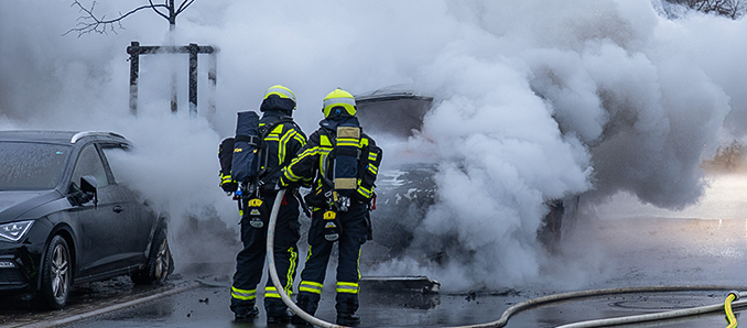 Beim Eintreffen der Feuerwehr stand der Multivan bereits in Vollbrand. Das mitten auf der Straße stehende Fahrzeug wurde komplett zerstört. Auch ein am Straßenrand geparktes Auto in der Nähe erlitt Schäden durch das Feuer. Neben der Feuerwehr war auch die Polizei vor Ort. Die Fahrerin bedankte sich bei den Anwohnern, die den Kindern sofort einen Platz zum Aufwärmen und Getränke anboten. +++