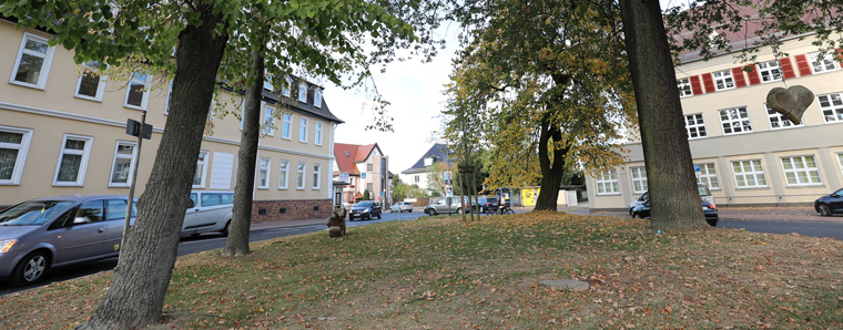 Die beiden Straßenbäume links sollen für den Transport von Bauteilen gefällt werden, die Bäume rechts bleiben erhalten.
