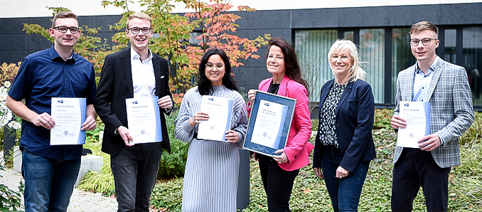 Die vier Auszubildenden der RhönEnergie Fulda-Gruppe mit einer Auszeichnung für ihre Bestnoten:
