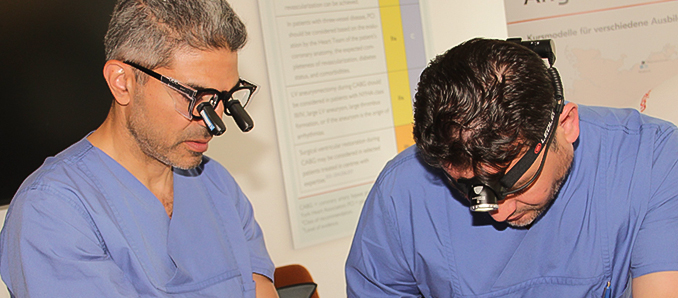 Während des Workshops konzentrierten sich die Übungen auf das Anlegen von Gefäßanastomosen und das Einnähen von Herzklappen. Diese praxisnahen Trainingsmöglichkeiten ermöglichten den Teilnehmern, ihre Fertigkeiten unter realitätsnahen Bedingungen zu verbessern und wertvolle Erfahrungen zu sammeln.
