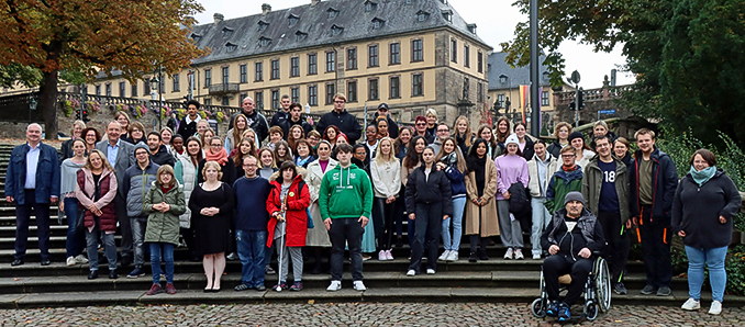 Mit diesem Treffen entstand ein „buntes“ Foto, welches wunderbar die verschiedenen Bereiche der Caritas repräsentiert: Studenten und Studentinnen der Pädagogik, im dualen Studium und im Praktischen Jahr, Auszubildende im kaufmännischen Bereich oder der Heilerziehungspflege sowie verschiedene Berufsbildungswege in den Werkstätten. Außerdem dabei die gerade gestarteten neuen Jahrgänge der Caritas-Pflegeschule.