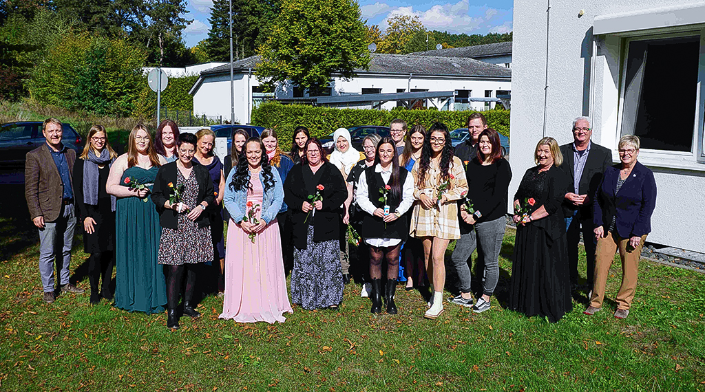 Es war der 46. Kurs der dreijährigen Ausbildung in der Altenpflege und der 19. in der einjährigen Ausbildung zu Altenpflegehelferinnen und –helfern. „Und die Sonne lacht an diesem Tag mit Ihnen. Sie alle haben sich diesen Abschluss mit Einsatzfreude und Fleiß erarbeitet und einen wichtigen Meilenstein erreicht“, unterstreicht Kreisbeigeordnete Iris Schmidt. Die Absolventinnen und Absolventen seien nun für vielfältige Herausforderungen im Berufsalltag gewappnet, und verdienten größte Anerkennung und Wertschätzung für ihre Arbeit, macht sie deutlich. „Motivierte Menschen, die sich stetig fort- und weiterbilden, die sich in einem schönen und interessanten Beruf einbringen, werden immer gebraucht. Alles Gute wünsche ich Ihnen dafür“, gibt sie den Nachwuchskräften mit auf den Weg.