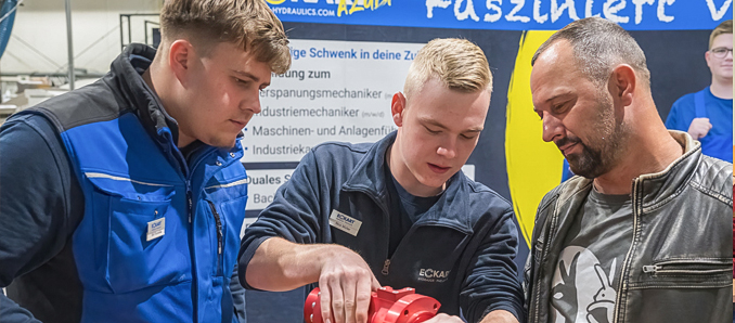 Einmal im Jahr lädt das weltweit agierende Maschinenbau-Unternehmen Eckart Hydraulics Interessierte zu sich ein, um Einblicke zu geben und die Ausbildungsberufe vorzustellen. Das Angebot nahmen auch diesmal wieder zahlreiche junge Menschen wahr.