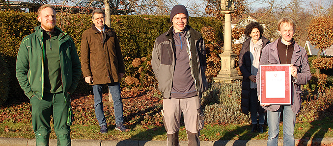 Waldemar Dombrowski, Vorsitzender der Geschäftsführung der Agentur für Arbeit Bad Hersfeld-Fulda, würdigte bei der Übergabe der Urkunde die Beständigkeit des Betriebes in Sachen Ausbildung. Fast in jedem Jahr stellt der Betrieb, der 48 Beschäftigte hat, mit Unterstützung der Arbeitsagentur bis zu drei Auszubildende ein. Wenn es die Bewerberlage zulässt. „Unsere Mitarbeiter müssen im Freien arbeiten können, ordentliche Umgangsformen haben, ins Team passen und möglichst über einen Führerschein verfügen. Da gestaltet sich die Nachwuchssuche mitunter schwierig“, erklärt Christoph Kümmel, der darauf hinweist: Zu 90 Prozent besteht die Belegschaft aus Männern. Lediglich eine Frau durchläuft zurzeit bei ihm eine Ausbildung zur Gärtnerin. Neben angehenden Gärtnern werden Fachpraktiker im Gartenbau ausgebildet. Durch diese vereinfachte Ausbildung bekommen junge Menschen eine Chance, die eher praxisorientiert sind.