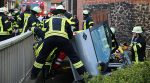 Eifa. Zu einem schweren Verkehrsunfall kam es am Sonntagabend auf der Bundesstraße 62 im Alsfelder Ortsteil Eifa. Ein 79-jähriger Autofahrer kam nach einer scharfen Linkskurve in Höhe einer Brücke von der Fahrbahn ab, durchbrach das Geländer und landete seitlich in einem Bachlauf. Der Fahrer sowie eine 80-jährige Mitfahrerin und ein 84-jähriger Mitfahrer wurden durch den Unfall schwer verletzt. Vier Rettungsteams, zwei Notärzte und die Crews der Rettungshubschrauber Christoph Gießen und Christoph 28 aus Fulda versorgten die Verunfallten. Ein Unfallopfer musste von Feuerwehrleuten mit einem Haltegurt und einem Rettungsbrett aus dem Fahrzeug gehoben werden. Der Einsatz von hydraulischem Rettungsgerät war laut einem Feuerwehrsprecher nicht nötig. Da aus dem Unfallwagen ölige Betriebsstoffe ausliefen, mussten von der Feuerwehr zwei Ölsperren im Bachlauf errichtet werden. Zur Bergung des Wagens rückte ein Abschleppunternehmen mit Kranwagen an. Die Bundesstraße 62 war während der Rettungsarbeiten und der Bergung für rund eine Stunde voll gesperrt. Die beiden Rettungshubschrauber landeten auf dem Eifaer Sportplatz, der dazu weiträumig abgesperrt wurde. Zur Ursache des Unfalls kann die Polizei derzeit noch keine Angaben machen. „Das Unfallfahrzeug wurde sichergestellt und wird von einem Gutachter in Augenschein genommen, wir ermitteln in aller Richtungen“, so ein Polizeisprecher. +++ fuldainfo | pw