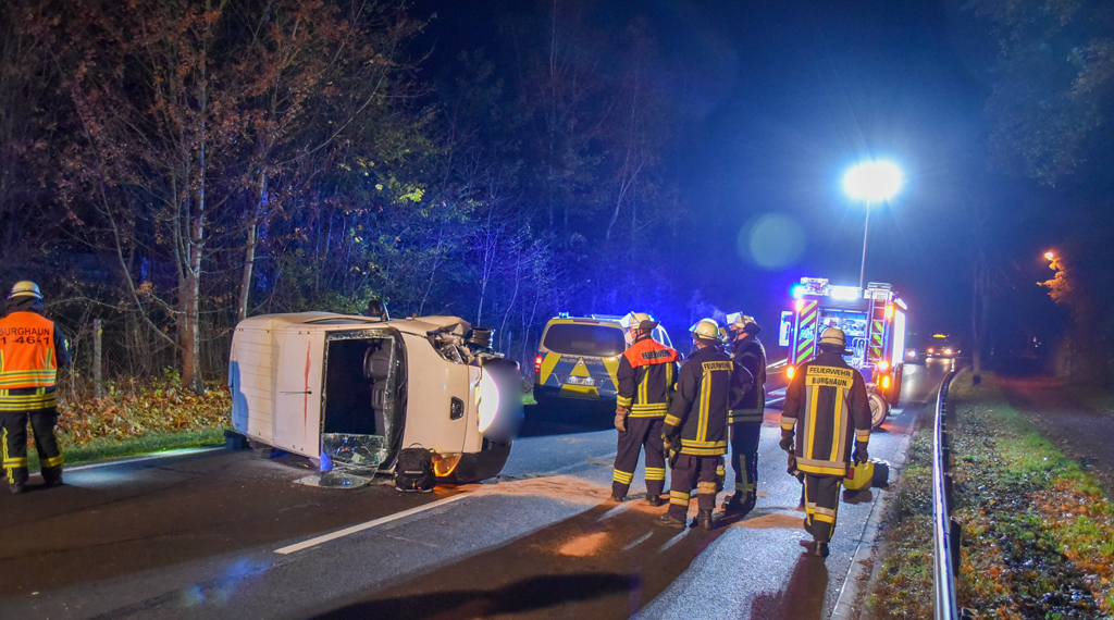 Wie die Polizei berichtet, mussten am Samstagabend mussten der Rettungsdienst, die Feuerwehr der Gemeinde Burghaun und die Polizei zu einem Unfall auf die B27 Richtung Hünfeld, Höhe Burghaun ausrücken. Vor Ort fand die Einsatzkräfte einen PKW vor, der die Verkehrsinsel am Ortseingang überfahren hat und eine Straßenlaterne gestreift und sich daraufhin überschlagen hatte. Der 36-jährige Fahrzeugführer befand sich noch im Fahrzeug, war jedoch nicht eingeklemmt und ansprechbar. Der Fahrzeugführer wurde nach der Rettung zur weiteren Untersuchung in ein Krankenhaus transportiert er erlitt schwere Verletzungen. Die Unfallursache war nach Polizeiangaben übermäßiger Alkoholkonsum und überhöhte Geschwindigkeit, an der Unfallstelle befand sich auch ein Stationärer Blitzer, der muss aber noch von der Polizei noch ausgewertet werden. Während der Bergung von Fahrzeug und Fahrer blieb die B27 Ortseingang Burghaun für zirka 2 Stunden zunächst voll gesperrt, Der Einsatz für die Feuerwehr war nach zirka einer Stunde beendet. Der Sachschaden beträgt 20.000 Euro der Führerschein wurde sichergestellt und eine Blutentnahme angeordnet. +++