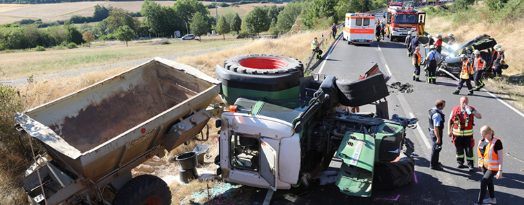 Schwerer Verkehrsunfall mit Raktor und PKW. Fotos: P. Weitzel