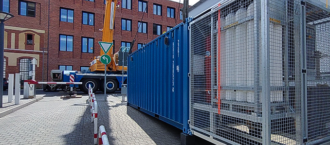 Es handelt sich um eine schlüsselfertige Komplettlösung im Container. Die Neuentwicklung wurde nach Vorgaben des Forscherteams um Professor Dr.-Ing. Ulf Schwalbe durch die Münchner Firma ostermeier H2ydrogen Solutions umgesetzt. Der Container enthält die gesamte Gebäudetechnik für eine ganzheitliche, umweltfreundliche Energieversorgung mit Wärme und Strom auf Wasserstoffbasis. Die Fuldaer Forscher wollen damit ihr eigens für die Komplettlösung entwickeltes Energiemanagementsystem an verschiedene Anwendungsszenarien anpassen und die Energiemanagementlösungen so für den bestmöglichen Einsatz regenerativer Energien optimieren – ein wichtiger Schritt in Richtung energieoptimierter Gebäudelösungen.
