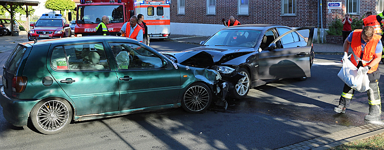 An der Kreuzung prallten zwei Autos nahezu frontal zusammen