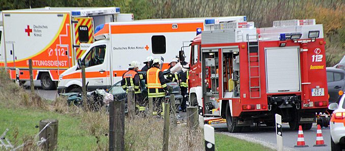Großenlüder/Müs. Zu einem Verkehrsunfall mit tödlichem Ausgang sowie drei schwerverletzten Personen, kam es am Freitagnachmittag gegen 14:55 Uhr in Großenlüder (Landkreis Fulda) im Kreuzungsbereich der Georg-Otterbein-Straße und dem Strickweg. Ein 82-jähriger Mann, aus einem Großenlüder Ortsteil stammend, befuhr mit seinem Pkw, einem grünen Fiat, außerhalb der Ortschaft Großenlüder-Müs, den Strickweg, um im weiteren Verlauf, nach links, auf die Georg-Otterbein-Straße in Fahrtrichtung B 254 aufzufahren. Beim Linkseinbiegen jedoch - übersah der 82-jährige, einen auf der Georg-Otterbein-Straße, aus Richtung B 254 in Richtung Hainzell fahrenden und bevorrechtigten Pkw, Renault Megan. Der Fahrer des Renault Megan, ein 60-jähriger Mann aus Großenlüder-Müs, versuchte noch auszuweichen, konnte einen frontalen Zusammenstoß jedoch nicht mehr vermeiden. Im Fahrzeug des 82-jährigen, befand sich als Beifahrerin die 83-jährige Ehefrau. Diese wurde bei dem Zusammenprall jedoch so schwer verletzt, dass sie noch an der Unfallstelle ihren schweren Verletzungen erlag. Der 82-jährige Unfallverursacher wurde ebenfalls schwerverletzt. Mit Kopf- sowie inneren Verletzungen, wurde er in ein Krankenhaus eingeliefert. Der 60-jährige Renault-Megan Fahrer und seine ebenfalls 60-jährige Ehefrau, die sich als Beifahrerin im Fahrzeug befand, wurden ebenfalls beide verletzt. Während der 60-jährige mit oberflächlichen Schnittverletzungen und multiplen Prellungen in ein Krankenhaus eingeliefert wurde, wurde seine Ehefrau mit Verdacht auf multiplen Rippenbrüchen und ebenfalls multiplen Prellungen, in ein Krankenhaus eingeliefert. Die Unfallstelle war für die Dauer von rund 3 Stunden voll gesperrt. Zur genauen Klärung des Unfallherganges, wurde ein Gutachter an die Unfallstelle hinzugezogen. +++
