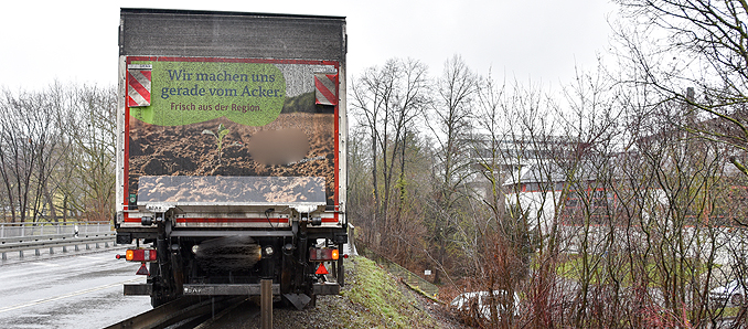 Ein Lkw ist am Freitagmorgen auf der B27 zwischen der Petersberger Straße und der Anschlussstelle Fulda-Nord in Richtung Hünfeld in die Leitplanke gekracht. Die genaue Unfallursache ist derzeit noch nicht bekannt. Der Auflieger geriet ins Schlingern und rutschte in den Straßengraben und fuhr hierbei auf die Leitplanke auf. In Höhe der Brücke Ziehers-Nord kam der Lkw letztlich zum Stehen. Dabei hatte der 50-jährige Fahrer großes Glück, dass der Sattelzug samt Hänger nicht den Hang hinunterstürzte. Ein Teil der Leitplanke lag auf der Fahrbahn. Auch ein Verkehrsschild wurde beschädigt. Der Fahrstreifen in Richtung Nord war zwischenzeitlich vollgesperrt. Der Verkehr wurde über die Petersberger Straße abgeleitet. Die Polizei hat die Ermittlungen aufgenommen. Der Sachschaden beläuft sich nach ersten Informationen auf 10.000 Euro. +++