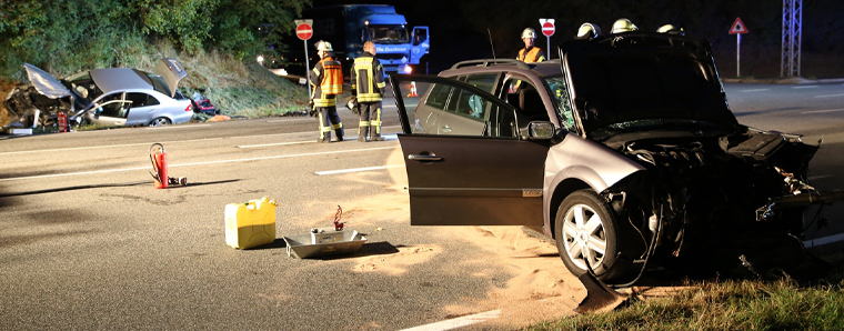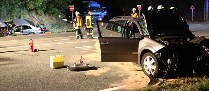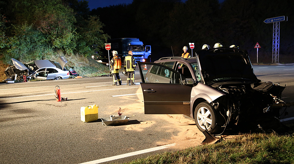 Fernwald. Zu einem schweren Verkehrsunfall kam es am frühen Freitagmorgen auf der Bundesstraße 457 nahe Fernwald. An der Auf- und Abfahrt der A5 in Richtung Frankfurt kollidierten aus noch ungeklärter Ursache zwei Autos. Durch den Aufprall wurden nach ersten Angaben drei Insassen verletzt, mindestens eine von ihnen schwer. „Wir wurden zu einem Unfall mit eingeklemmten Autofahrern alarmiert, glücklicherweise bestätigte sich das nicht“, so der Fernwalder Gemeindebrandinspektor Jens Richmann.
