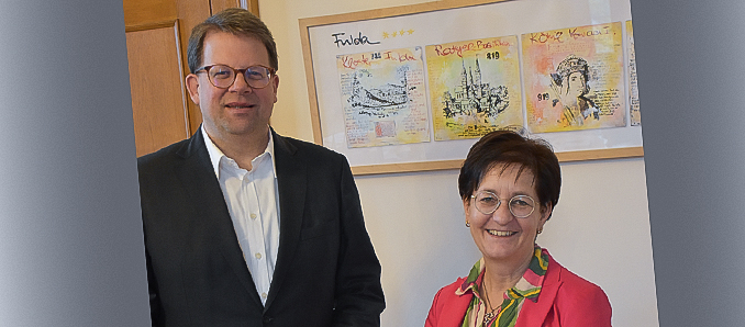 Anke Hofmann, die als parteilose Bewerberin in das Rennen um das Bürgermeisteramt gestartet war und sich im Oktober 2022 in der Stichwahl durchsetzen konnte, arbeitete bis zum Jahreswechsel als Leiterin des Fachbereich Finanzen und Immobilienmanagement der Stadt Bad Hersfeld und war 2019 zudem Hessentagsbeauftragte für den Bad Hersfelder Hessentag. Vor diesem Hintergrund gab es zwischen Hofmann und Wingenfeld auch eine gute Gelegenheit zum Austausch über den Hessentag, der in Fulda 2021 coronabedingt ausfiel und nun 2026 stattfinden wird. Die Bürgermeisterin und der Oberbürgermeister vereinbarten, den jetzt begonnenen Gesprächsfaden regelmäßig wieder aufzugreifen und die bislang nur grob skizzierten Ideen zur Zusammenarbeit weiter zu vertiefen. +++ pm