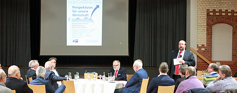 „Die Unternehmen der Region sind auf den Zuzug von Ausbildungs- und Fachkräften von außerhalb dauerhaft angewiesen“, so IHK-Präsident Bernhard Juchheim in seinem Impulsvortrag zu der wirtschaftlichen Entwicklung im Landkreis Fulda und der Situation in der Gemeinde Bad Salzschlirf. Im Wettbewerb um Auszubildende, Fach- und Führungskräfte haben die ländlichen Räume Nachteile gegenüber den großen Städten. Arbeitnehmer wollen nicht nur einen Arbeitsplatz, der sie befriedigt, der gut bezahlt ist und der gute Zukunftschancen hat; Sie legen auch Wert auf adäquate Lebensbedingungen. Gerade bei den Themen der Einkaufsmöglichkeiten und der Ärzteversorgung, müssen wir aufpassen, dass nicht nur hinsichtlich der demografischen Entwicklung eine Abwärtsspirale in Gang kommt, denn schon jetzt ist auch im Landkreis Fulda eine Landflucht zu beobachten. Das Oberzentrum Fulda wächst und die ländlichen Gemeinden schrumpfen. Das gilt letztendlich auch für Bad Salzschlirf. Wie kann die Gemeinde Bad Salzschlirf diesem Trend entgegensteuern? „Es gilt nach wie vor der sogenannte ‚demografische Dreiklang‘“, weiß Juchheim. Dort, wo gute infrastrukturelle Rahmenbedingungen vorherrschen, siedeln sich auch Unternehmen an. Und dort, wo Arbeitsplätze sind, siedeln sich Menschen an. Arbeitsplätze und Einwohnerzahl scheinen untrennbar miteinander verbunden. Allerdings haben sich die Zeiten des Fachkräftemangels, der demografische Dreiklang etwas verändert. Fachkräfte legen immer mehr wert auf die sogenannten „weichen Standortfaktoren“. Lebensqualität spielt eine immer größere Rolle. Hier kann Bad Salzschlirf in Zukunft punkten. „Investitionen und die touristische Infrastruktur - also auch in das Kurbad - dürfen nicht alleine unter den direkten, betriebswirtschaftlichen Kennzahlen betrachtet werden, sondern im Gesamtkontext aller weichen Standortfaktoren“, sagt der Präsident der Industrie- und Handelskammer Fulda, Bernhard Juchheim. Ein Blick in die Tourismusstatistik verrät, dass nach Fulda Bad Salzschlirf im vergangenen Jahr mit 229.000 Übernachtungsgästen die zweithöchste Zahl der Übernachtungen- und mit 5,1 Tagen die längste Verweildauer verzeichnet. „Die 617.000 Übernachtungsgäste in Fulda kommen nur auf eine Verweildauer von 1,6 Tagen. Insgesamt sind die Übernachtungszahlen in Bad Salzschlirf stabil und nach der Talsohle im Jahr 2014 mit 212.000 sogar wieder leicht ansteigend.“