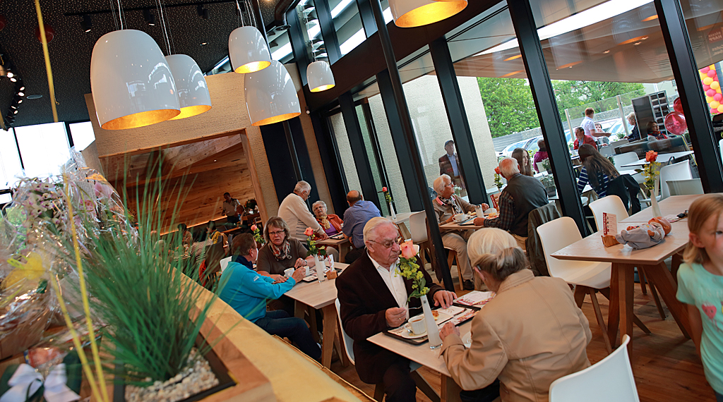 100 Sitzplätze laden Cafébesucher zum Gemütlichen Verweilen ein. Modernität, Echtheit und Barrierefreiheit, waren für die Geschäftsführer Christoph und Michael Happ, wichtige Entscheidungskriterien: „Uns war es wichtig, dass in puncto „Innenarchitektonische Gestaltung“, mit echten Materialien gearbeitet wird. Das, was wie Holz oder Stein aussieht, sollte auch aus dieser Beschaffenheit, gestaltet sein“, so Geschäftsführer Christoph Happ. Wir hatten insgesamt vier Jahre Planungszeit, weil wir immer wieder etwas verändert, verbessert oder neue Ideen miteinbrachten“, so Christoph Happ weiter.