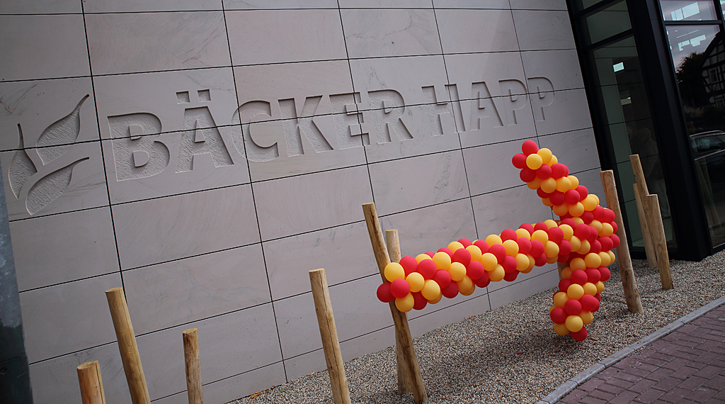 Ein Pfeil aus Luftballons wieß den Weg ...