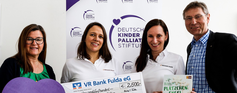Die Bäckerei Happ hat der Deutschen KinderPalliativStiftung einen Scheck in Höhe von 2500 Euro überreicht. Mehr als 240 Kinder hatten während der Adventszeit Plätzchen in der Backstube am Standort in Neuhof gebacken, die dann in den Happ-Filialen verkauft wurden. Der Erlös fließt jährlich einem guten Zweck zu.