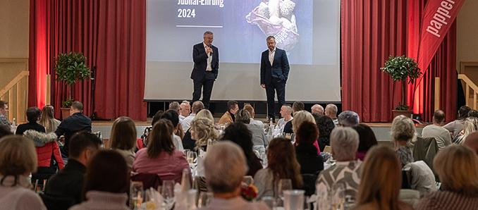 „Uns ist die Nähe zu unseren Mitarbeitern wichtig“, sagte Klüber und das war an dem Abend spürbar. Das ist laut dem Geschäftsführer ein wesentlicher Grund, warum Mitarbeiter lange bei Pappert sind. Damit das so bleibt, lässt sich der Familienbetrieb auch immer wieder neue Vorteile für seine Mitarbeiter einfallen. „Selbstverständlich ist bei uns eine faire Bezahlung das wichtigste Puzzleteil. Wir wollen aber mit unserem Gesamtpaket noch mehr bieten, damit unsere Kolleginnen und Kollegen die Wertschätzung erhalten, die sie für ihre gute Arbeit verdienen“, so Klüber. Mit dem neuen Backhaus in Eichenzell sichere die Bäckerei die Zukunft des Unternehmens und schaffe neue, krisensichere Arbeitsplätze. Auf dass noch viele Jubilar-Feiern folgen. +++ pm
