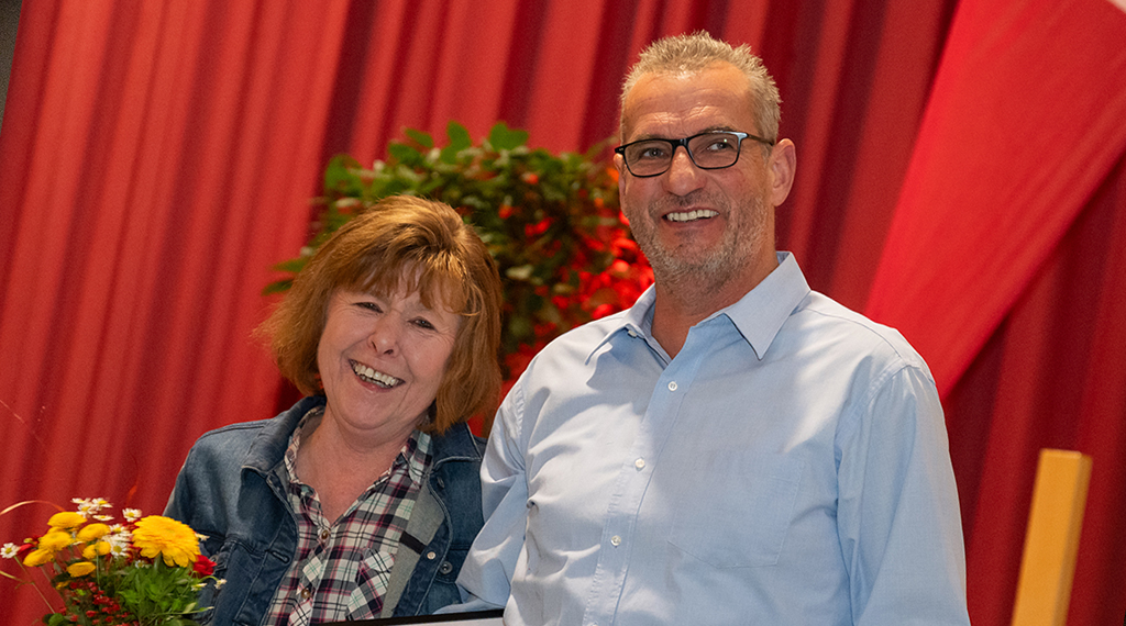 „Wir sind wahnsinnig stolz, dass wir so tolle und treue Mitarbeiter haben“, sagte Geschäftsführer Bernd Pappert beim Ehrungsabend, der jetzt im festlich geschmückten Bürgerhaus in Poppenhausen (Wasserkuppe) gefeiert wurde. „Der Erfolg unseres Unternehmens wäre nicht möglich, ohne Euren Einsatz“, ergänzte Geschäftsführer Manfred Klüber. Bei gutem Essen von Nelles Catering gab es Urkunden und Anerkennung für die jahrelange Treue.