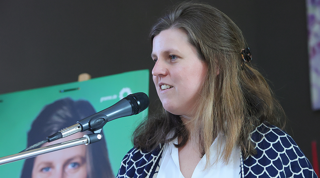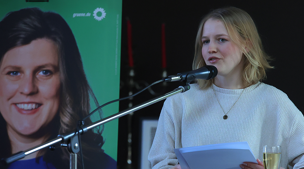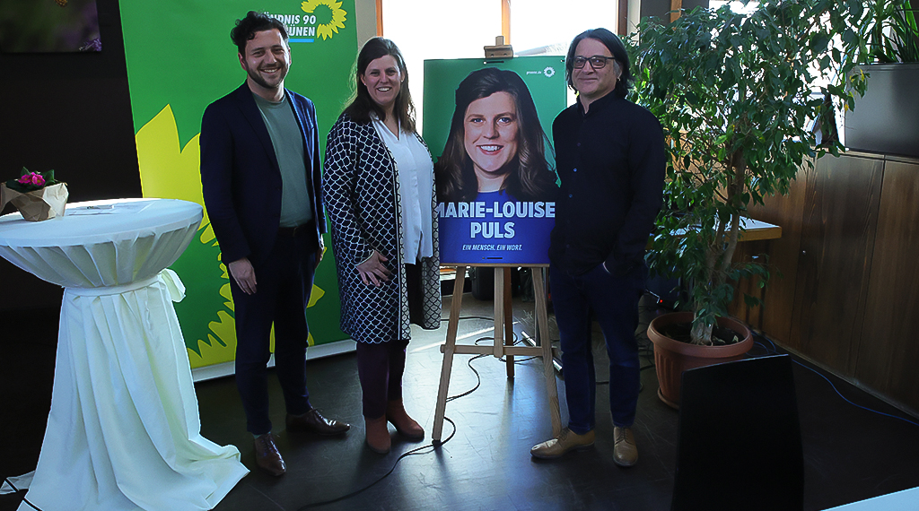 Ihrer Auffassung nach seien die Menschen bezugnehmend zur Bundestagswahl sehr daran interessiert, sich breit zu informieren. Den Eindruck hatte sie auch am Morgen im Vorfeld des Empfangs als sie gemeinsam mit ihren Parteikolleginnen und – kollegen auf dem Universitätsplatz Wahlkampf machte. Hoffnungsvoll im Hinblick auf die Wahl am 23. Februar stimme sie die vielen Parteieintritte regional, aber auch bundesweit. Marie-Louise Puls nutzte den gestrigen Empfang auch dazu, um sich bei ihren Parteikolleginnen und – kollegen für den „großartigen Support“ zu bedanken. „Es sind die letzten Wochen so viele Menschen in unsere Partei eingetreten, wie schon lange nicht mehr. Sie alle eint, die grüne Idee, der Glaube an die Solidarität und die Hoffnung, nur im Gemeinsamen und in der Geschlossenheit politische Zielsetzungen zu verfolgen“, sagte Puls zu den rund 150 Gästen. Dass sich aktuell so viele Menschen für einen Parteieintritt bei den Grünen entscheiden, mutmaßt Puls in einer Botschaft, die im „krassen Gegensatz“ zu Friedrich Merz stehe und die Menschen abhole. „Wenn wir Grünen den Menschen etwas versprechen – und ich weiß, mit Versprechen muss man immer vorsichtig sein – dann gehen wir diesem Versprechen auch nach. Und als hätten wir es geahnt, was sich diese Woche im Bundestag abspielen würde, steht auf unseren Plakaten mit Robert Habeck: ‚Ein Mensch. Ein Wort.‘ Wenn wir Grünen den Menschen etwas versprechen, dann leisten wir dem auch Folge. Und in diesem Sinne möchten wir auch diesen Wahlkampf gestalten. Ein Mensch. Ein Wort. Damit steht Robert Habeck im krassen Gegensatz zu Friedrich Merz.“