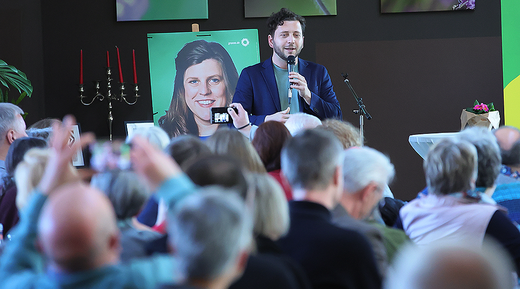 Banaszak weiter: „Wenn es die letzte Bundesregierung gewesen ist, dafür zu sorgen, dass die Ziele erreichbar sind, dann ist es die nächste Bundesregierung, die darüber entscheidet, dass das dann auch passiert. Daher ist die Botschaft, bei der mich Menschen im politischen Berlin häufig fragen, seit wann ich bei den Grünen, weil wir sagen ‚Kurs halten beim Klimaschutz‘ ‚denn so konservativ bin. Kurs halten beim Klimaschutz bedeutet nicht, dass alles so bleibt wie es ist. Das ist nicht Kurs halten. Kurs halten heißt vor allem, die Ambitionen hochzuhalten. Kurs halten heißt, den eingeschlagenen Weg fortzusetzen, die Erneuerbaren Energien mindestens in dem Tempo wie bisher, wenn nicht sogar noch schneller, auszubauen. Kurs halten heißt, den Netzausbau, der über eine lange Zeit nicht gemacht wurde, zu beschleunigen, damit die günstigen Entstehungspreise der Erneuerbaren auch bei den Verbrauchern ankommen, ganz gleich, ob privat oder industriell. Wenn wir über all diese Dinge sprechen und Fortschrittskoalition breiter denken und uns bewusst machen, was erreicht werden konnte in der Gesellschaftspolitik, ein Fachkräfteeinwanderungsgesetz, das die Chance bietet, das Leute auch zu uns kommen können, die wir so dringend brauchen oder eine Reform des Staatsbürgerrechts, das ermöglicht, dass Menschen tatsächlich auch schneller dazugehören, wenn sie Jahre hier bei uns leben, sich anstrengen und einbringen. Und wenn wir all das sehen, dann stehen wir jetzt vor einer sehr entscheidenden Weggabelung. Und deswegen ist diese Bundestagswahl am 23. Februar so entscheidend.“