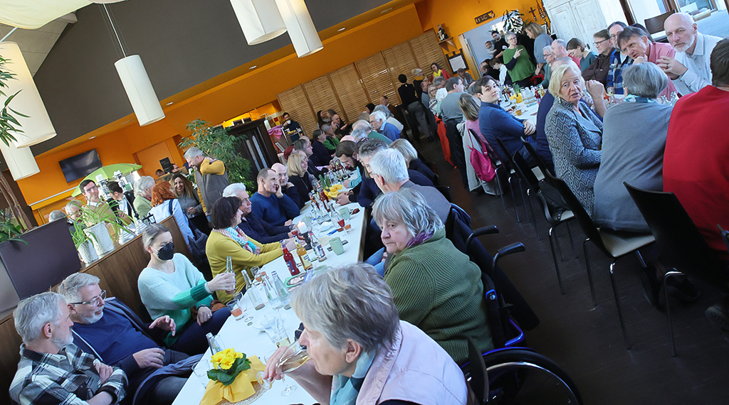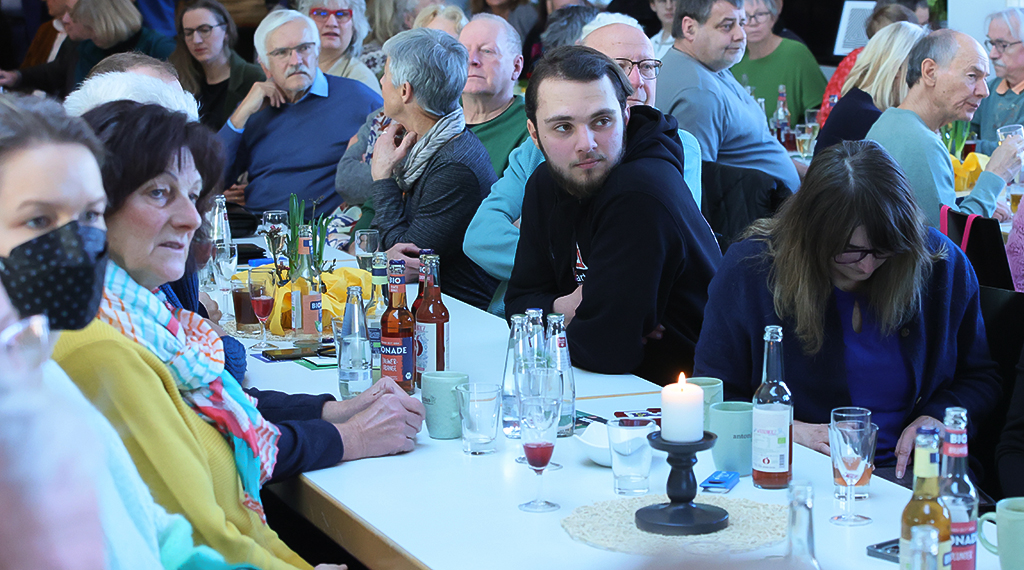 Im Vorfeld hatte Frauke Goldbach von Fridays for Future Fulda in einem selbst von ihr verfassten Poetry-Slam ihre Gedanken zu den weltpolitischen Ereignissen und den jüngsten Geschehnissen im Deutschen Bundestag mit den Gästen geteilt, wofür sie viel Zuspruch erntete. Marie-Louise Puls und Knut Heiland verabschiedeten ihren prominenten Gastredner zwar nicht mit einem typisch „Fuldaer Rucksack“, dafür aber mit einem überaus gut gefüllten Präsentkorb, diesen es auf der Rückreise mit der Deutschen Bahn unfallfrei zu überführen galt. Mit dem Verzehr von Fingerfood eines ausgedehnten und vielseitigen Büfetts, kalten und heißen Getränken und anregenden Gesprächen fand der Neujahrsempfang des Grünen Kreisverbandes Fulda 2025 letztlich sein Ende. Ein besonderer Dank für die gute Bewirtung und den reibungslosen Ablauf ging nicht zuletzt an die Mitarbeiter von antonius sowie dessen Geschäftsführer, der als Gast und Hausherr unter den Gästen weilte. +++ jessica auth