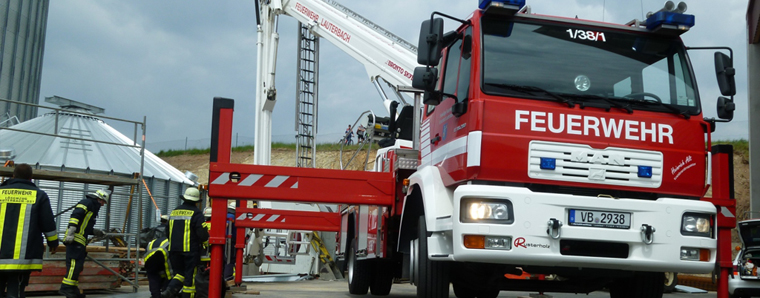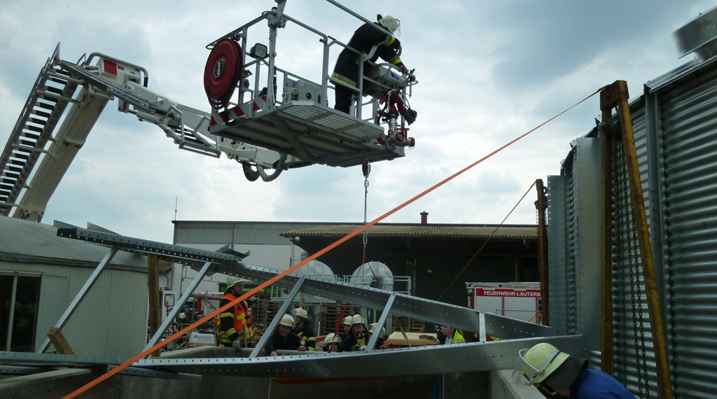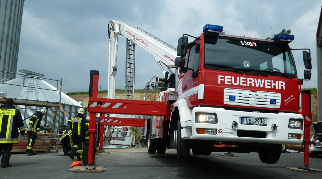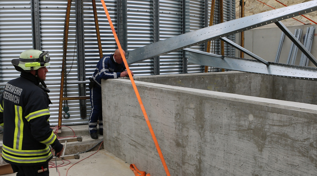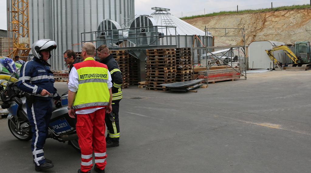 Maar. Zu einem schweren Unfall kam es am Samstagmittag auf einer Baustelle im Lauterbacher Ortsteil Maar. Ein etwa 30-jähriger Bauarbeiter stürzte bei der Errichtung eines Silos in eine drei Meter tiefe Baugrube aus Beton. Die genauen Umstände ermittelt die Polizei derzeit noch, möglicherweise stürzte eine Gerüstkonstruktion ein. Nach der Erstversorgung durch eine Notärztin und ein Rettungsteam, konnten Feuerwehrleute den schwer verletzten Mann aus der Grube befreien. Die Feuerwehr war mit einer Teleskophubrettungsbühne angerückt, über die der Verunfallte mit einem Rettungsbrett und eine Rolle aus der Grube gezogen werden konnte. Wie Feuerwehrsprecher Andreas Wahl informierte, waren die Löschzüge Mitte und Ost der Feuerwehr Lauterbach mit 20 Einsatzkräften vor Ort. Die Crew des Rettungshubschraubers Christoph 28 transportierte den Schwerverletzten in die Kliniken nach Fulda. +++ fuldainfo | pw
