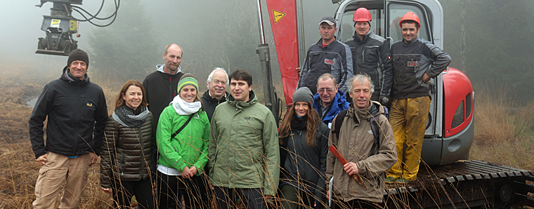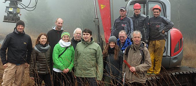 Lauterbach. Am Donnerstagvormittag hieß es Startschuss für den Baubeginn im Hochmoor Breungeshainer Heide. Ein spannender Moment für alle die an der langen Planungsphase beteiligt waren. Seit dem Frühjahr 2016 ist das Naturschutzgroßprojekt Vogelsberg dabei die Wiederherstellung des Hochmoores in der Breungeshainer Heide detailliert auszuarbeiten. Es wurden Methoden und Erfahrungen anderer Projekte ausgewertet, um die bestmögliche Herangehensweise für unser Moor zu finden.