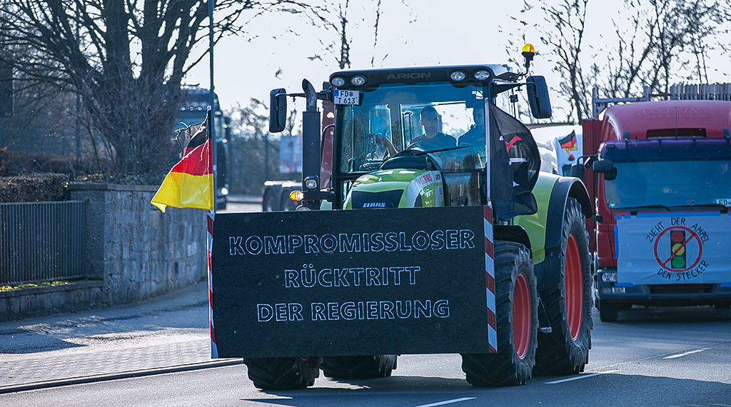 In ganz Deutschland haben Landwirte am Montagmorgen mit ihren Traktoren gegen die Pläne der Ampel-Regierung protestiert. Unzählige Autobahnauffahrten wurden blockiert, vielerorts gab es Stern- und Schleichfahrten sowie auch ganz gewöhnliche Protestkundgebungen. „Wir stehen zur Verfassung und zum Grundgesetz, das beinhaltet natürlich auch friedliche Demonstrationen“, sagte der Präsident des Deutschen Bauernverbandes, Joachim Rukwied, beim Besuch der CSU-Klausur im Kloster Seeon. Von übergriffen Nötigungen wie am Fähranleger Schlüttsiel, wo eine aufgebrachte Menge Wirtschaftsminister Habeck daran hinderte, an Land zu gehen, distanzierte er sich erneut. Was die Ampel-Regierung plane, sei nichts anderes als eine Steuererhöhung für die Bauernfamilien und gefährde deren Zukunft und damit auch die Ernährungssicherung. Auch die bereits erfolgte Rücknahme reiche nicht aus.