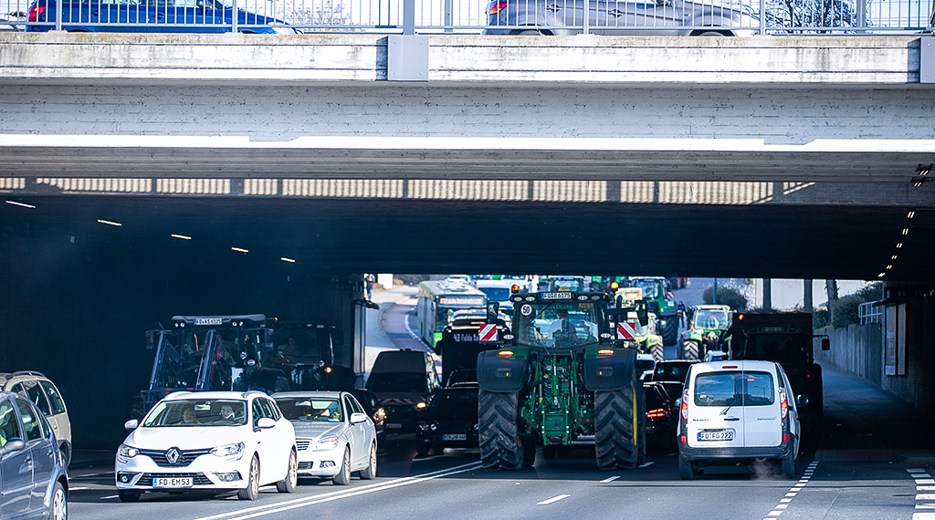 Die Gewerkschaft der Polizei zog gegen Mittag in Wiesbaden ein positives Zwischenfazit. Im Rahmen der angekündigten Aktionswoche der Bauern, sich an Recht und Gesetz zu halten und das besondere Wirken von landwirtschaftlichen Maschinen zu berücksichtigen, gab es bisher neben Verkehrsstörungen keine größeren Beeinträchtigungen. Schon in den frühen Morgenstunden waren vereinzelt Autobahnabschnitte rund ums Wiesbadener Kreuz kurzfristig gesperrt.