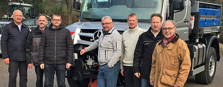 Das Ergebnis war zufriedenstellend. Das Gebrauchtfahrzeug brachte einen Erlös, mit dem die Leasingrate für den neuen Unimog fast zwei Jahre bezahlt werden kann. Der Gemeindevorstand hatte sich bei der Neubeschaffung nämlich für einen Leasing-Vertrag entschieden, der über 72 Monate läuft. Schließlich hat der Neue Unimog einen Listenpreis in Höhe von 220.000 Euro. Darin sind alle wichtigen Ausstattungsmerkmale enthalten, die für den effektiven Einsatz beim Bauhof der Gemeinde Poppenhausen (Wasserkuppe) von Bedeutung sind. Auch ein neuer Aufsatz für den modernen Winterdienst gehört dazu. Erstmals wurde der Streuaufsatz mit einem kombinierten Tank ausgestattet. Ein Teil wird mit Salzlauge gefüllt, der andere mit Streusalz.