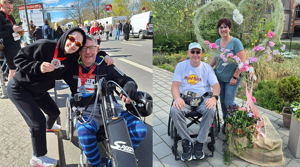 Als wär‘s ein Stück von mir. Ja, wieder äußert sich seine Ehefrau. „Wille und Ehrgeiz? Das hat man auch gesehen bei seinen Halbmarathons.“ Mit Handicap. Im Rollstuhl. Dreimal hat Bernd die schon absolviert, immer im April, in Berlin. „Der erste war sein schwerster“, sagt Beate, weil er nicht wusste, was auf ihn zukam. Mit Handbike fährt er, mit Elektronik. Und jetzt strahlen Fichtes Augen. Wieder quillt Ehrgeiz hervor. Wieder tritt er mit Überzeugungskraft auf. „Das Brandenburger Tor wollte ich sehen.“ Und Autofahren, das kann Fichte auch. Er hat ein behindertengerechtes, umgebautes Auto.
