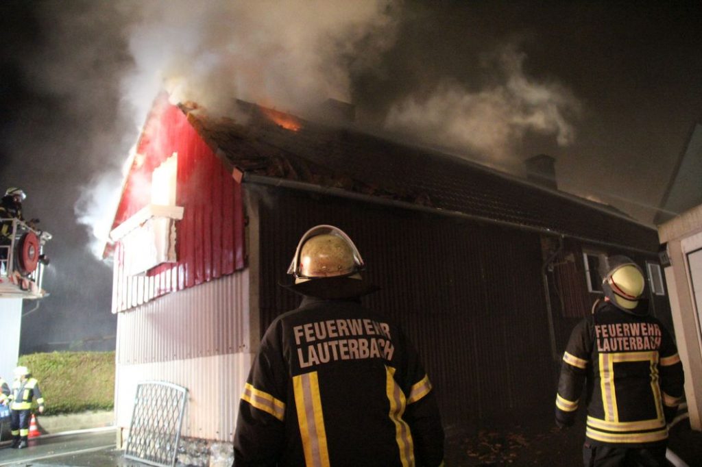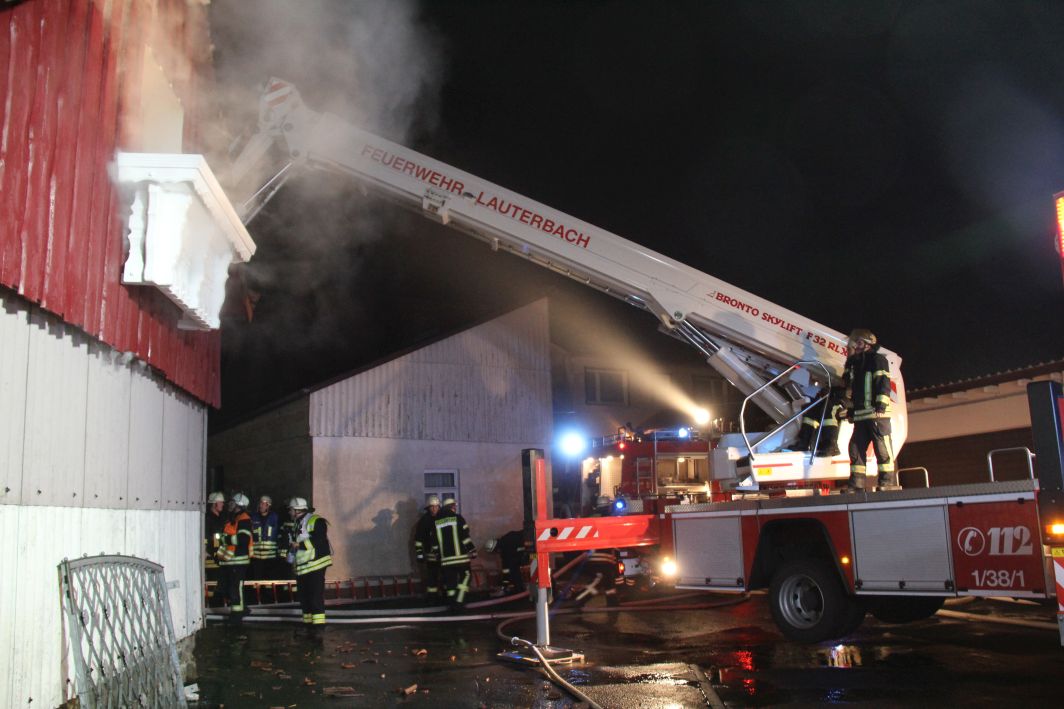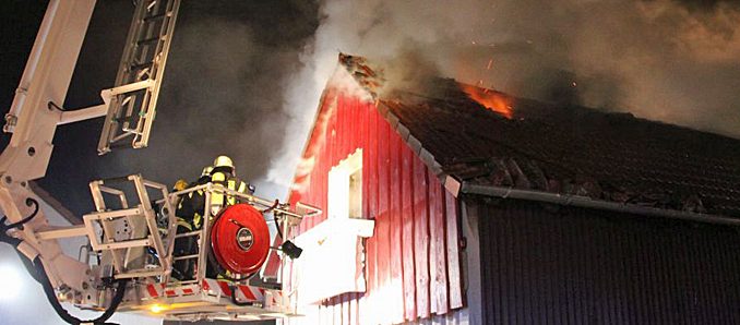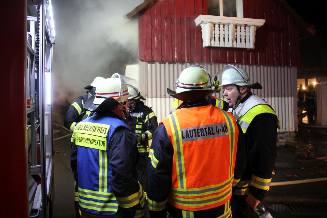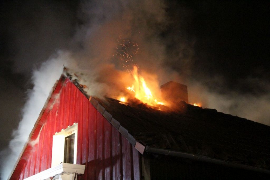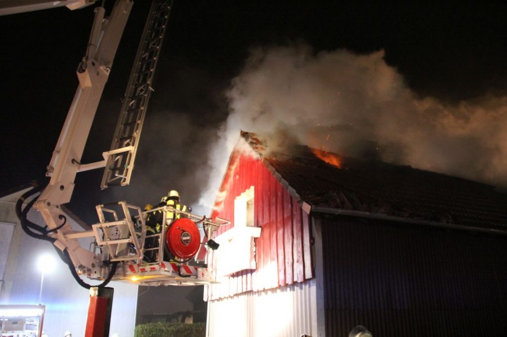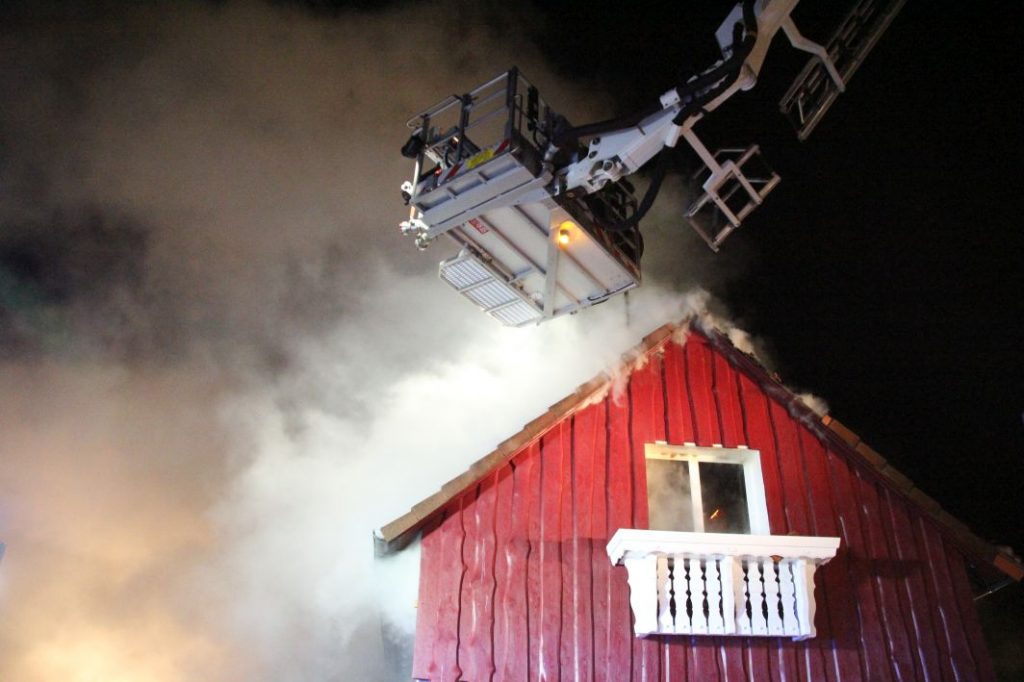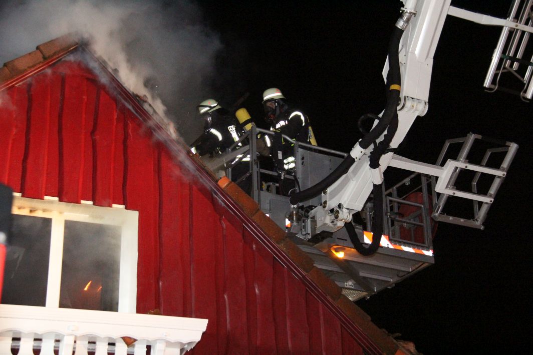 Ein Ehepaar kam gerade vom Einkaufen nach Hause als sie in ihrem Haus Rauchentwicklung wahrnahm. Als sie die Haustür öffneten, zündete es durch. Der Dachstuhl stand plötzlich lichterloh in Flammen. Die alarmierte Feuerwehr löschte unter Einsatz von Atemschutzgeräten. Mit Hilfe einer Drehleiter öffneten sie das Dach, um an die Brandherde zu gelangen. Die Rauchentwicklung war so Stark, dass die Polizei mit Lautsprecherdurchsagen durch den Ort fuhr, um die Anwohner zu warnen, Fenster und Türen dringend geschlossen zu halten. Das Wohnhaus war nach dem Brand unbewohnbar. Die Bewohner kamen zum Glück mit dem Schrecken davon. Wenn auch mit einem sehr Großen. +++