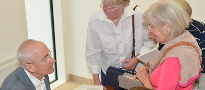 Und das war es, was die besondere Lesung ausmachte: Bild, Text und Musik, eine Komposition, wie sie besser hätte nicht sein können. Das Publikum dankte mit viel Applaus und genoss anschließend den Ausklang im Garten der Kreuzkirche bei Gebäck und Getränken. Werner Vogt signierte im Anschluss sehr individuell die Buchwünsche seiner Zuhörer Silvia Hillenbrand dankte den ausführenden Künstlern und Herrn Pfarrer Bürger für die Zurverfügungstellung der Kreuzkirche, allen Helfern und Helferinnen, die dazu beigetragen hatten, dass es ein wunderbarer Abend wurde, sowie den Sponsoren Michael Happ von der Bäckerei Happ, Herrn Wolfgang Wehner von der Fa. Groma und Herrn Weber vom Getränkeshop Weber in Bimbach. „Der Erlös durch Spenden und Verkauf kann sich sehen lassen. Es gehen 971,40 Euro auf das Konto des Hospiz-Fördervereins. Das Geld kommt der hospizlichen Arbeit in Osthessen zu Gute“, stellte Silvia Hillenbrand das Ergebnis fest. +++ fuldainfo | pm