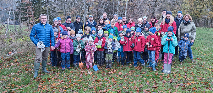 440 Bäume müsste jeder im Leben pflanzen, um seinen CO2 Ausstoß auszugleichen. Eine Zahl, welche die Betreuer und Mitglieder der Bergwacht Jugend Wasserkuppe mit deren Familien nachhaltig beeindruckt hat. Ein erster Schritt in diese Richtung sind die 30 Baumsetzlinge, welche den Kindern und Jugendlichen im Rahmen der Landesgartenschau 2023 überreicht wurden. In Zusammenarbeit mit der Stadt Gersfeld und Dr. Steffen Korell wurde ein Platz in Gersfeld ausgesucht, an welchem alle Bäume durch die Bergwacht Jugend Wasserkuppe nebeneinander gepflanzt werden konnten. Eine bunte Mischung aus einheimischen Laubbäumen, unter anderem aus Feldahorn, Hainbuche, Eberesche und Esskastanie, wurden so dort gepflanzt, wo vorher einige Bäume aufgrund des Borkenkäferbefalles gefällt werden mussten. Nun haben die Kinder auch weiterhin die Aufgabe, sich um ihren eigenen Baum zu kümmern und zu schauen, was dieser zum Wachsen braucht. Denn dass uns Naturschutz ein Leben lang begleitet, ist eines von vielen Themen, was bei der Bergwacht Jugend auf dem Ausbildungsplan steht. Wer weitere Infos über die Arbeit der Einsatzmannschaft und Jugend der Bergwacht Wasserkuppe möchte, findet diese unter: www.bergwacht-foerderverein.de. Dort gibt es auch die Möglichkeit, mit einer Mitgliedschaft im Förderverein, die ehrenamtliche Arbeit der Bergwacht Wasserkuppe zu unterstützen. +++ pm